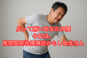 つまり、日常の動作で「反る・ひねる・傾ける・立ち続ける」といった姿勢が積み重なると、椎間関節に炎症やストレスが生じ、腰痛が悪化してしまいます。
